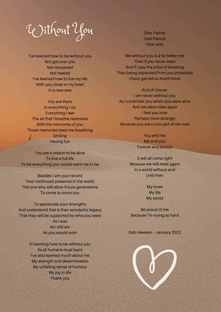 I'm a writer, public speaker, medium, and spiritual thinker. I suffered from acute anxiety from the age of 16 until I was well into my 50s, when I finally found methods that helped me to put it behind me. My struggles led to me exploring life through poetry, then plays, and over a 15 year period I made notes for a self help book which I published in 2015. Details on the book page. Although I am a psychic medium and loved the work, it didn’t feel right for me. It was an utter privilege, but my path was the exploration of what it means to be spirit in the real world and how we can make practical use of those abilities. Nowadays I write, blog, and teach soul-centred living, which is a gentle way of undoing past programming and connecting to your essential self, or soul. If you’re interested email me and we can chat. No pressure, it’s right for you or it’s not and you will know. The groups meet on line so no going out on cold, wet, winter’s evenings. On a personal note, I’m based in the UK. Married with five cats, no children, and four grandchildren, thanks to our inherited daughter, who has gifted us four beautiful little people that bring us such joy. Hope you enjoy the blogs. Deb xx