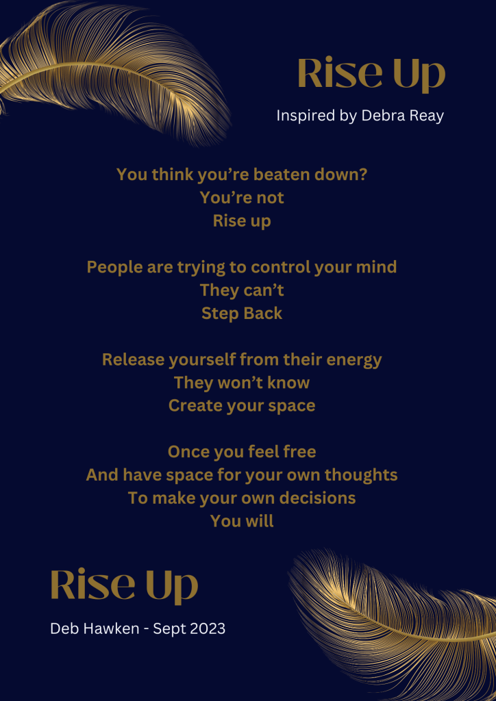 This poem was inspired by fellow writer, Debra Reay. Like myself and many others she has been through hell and come out of it as her own person. It is also dedicated
