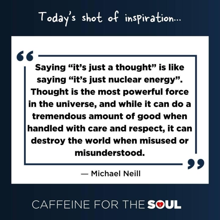From the world situation to the events in our lives, everything began with a thought. We sadly can’t change the world even though millions of us must agree on the futility of the world situation at the moment. However, we can be more aware of the nuclear power of our own thoughts and do something about that.