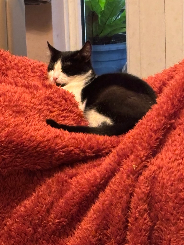 I know it was October 1984 as I was having sessions with my spiritual mentor, and kitten Geris made it clear that he would not be prevented from attending every session if it meant screaming at the top of his lungs whilst tearing the door apart. Keith was worried he’d disturb me, he marched in, walked to Keith and curled up beside him, looked at him as if to say ‘go, I’ll just observe’ and co-mentored from there.