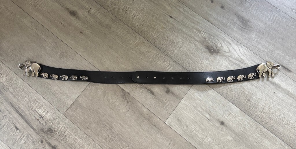 I do have 40 year old elephant belt though, that still fits me. I don’t wear it often as it goes over clothes not through belt loops, and I have nothing to wear it with. Mind you, I don’t have belt loops either. 🤣