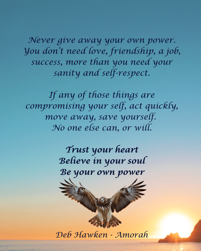 Personal power is yours to give away, no one else can take it. Always remain centred and hold on to your sense of self. You are human, you will make mistakes, they are to be learned from not used to undermine you. No one can do that unless you hand them the shovel. Never give someone else the power to destroy you.