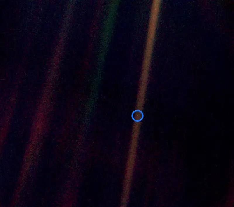 This image was taken in February 1990 by NASA’s Voyager One. It’s known as the Pale Blue Dot, and it was taken from 3.7 billion miles away. The Earth is in a sunbeam. If this doesn’t put our place in space and time into perspective, what does?