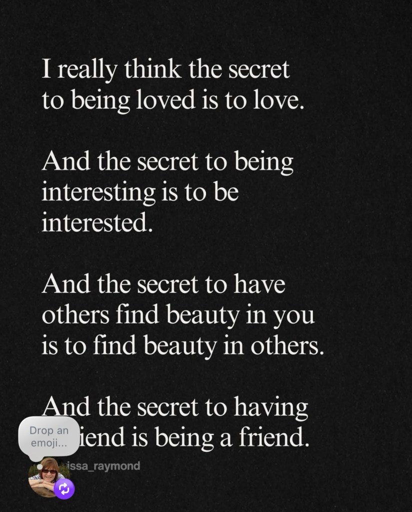 Ultimately this whole meme reminds us that what is not within us cannot be given, shared, or expressed. In other words, if you want to be loving, interesting, have beautiful friends, you’ll need to be those things yourself.