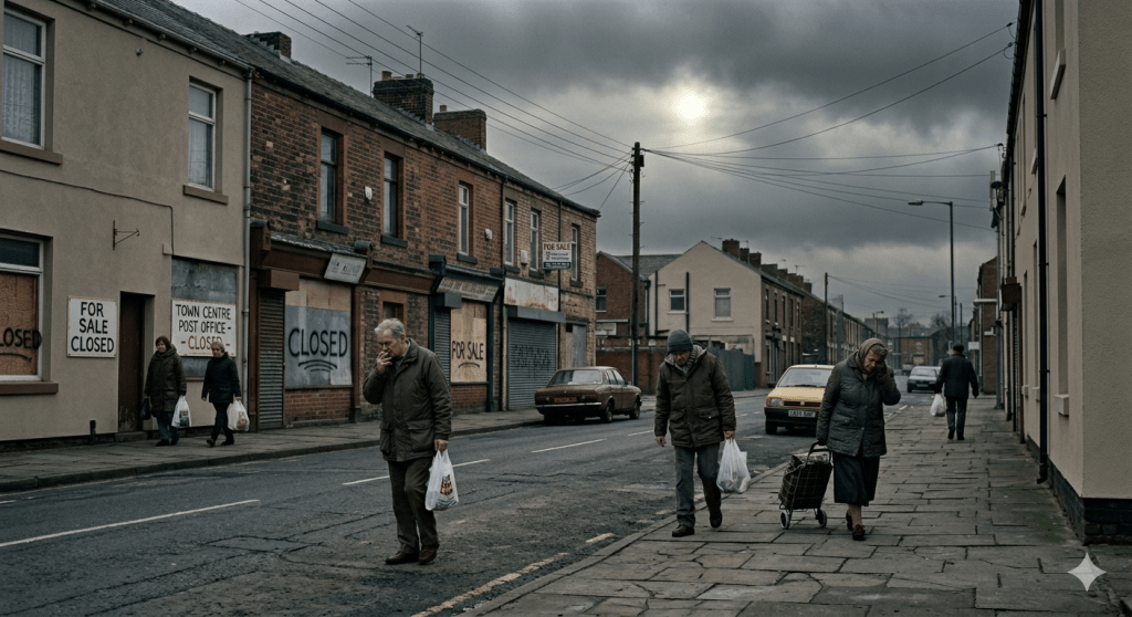 We have an indoor shopping centre which is not full of empty shops, and an old fashioned high street which whilst not great is mainly full of shops. The parks are lovely, there a many footpaths reducing the need to drive. All the big supermarkets, local shops and post offices everywhere, and more car parks than we know what to do with.