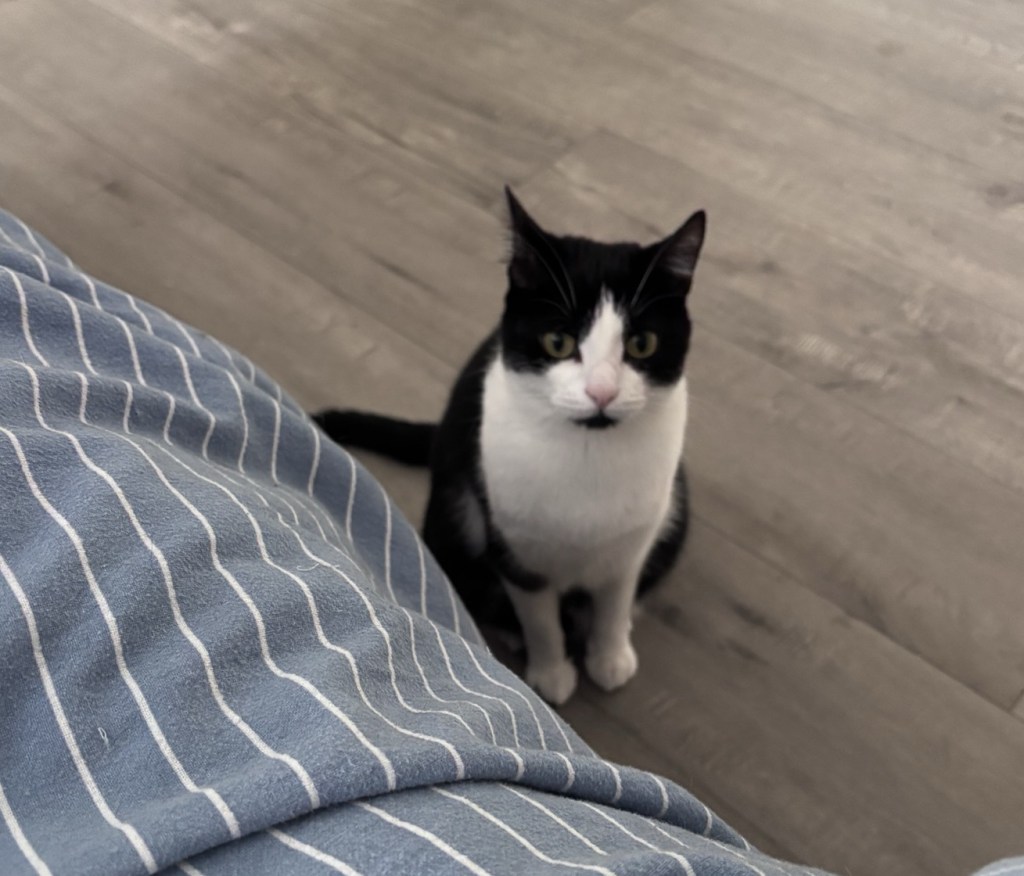 So there I am today, frozen in place, trying to work out if I can wield a nail file with my teeth, when I’m joined by my little Lily cat, who is now intrigued, and has claws, and has found a new toy! There are so many ways that’s terrifying. Including a sharp claw in a toe! Unbelievably painful.
